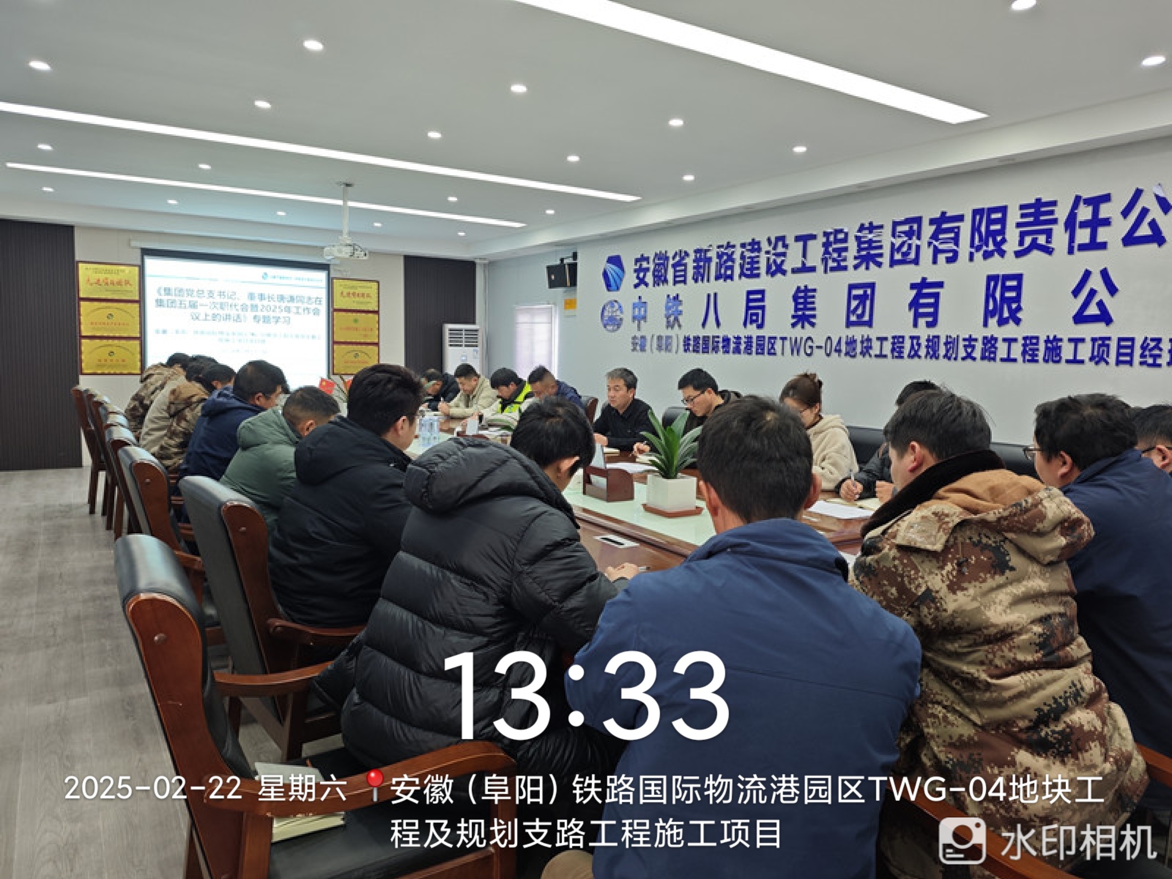 近日,为深入贯彻落实集团党总支书记、董事长唐谦同志在年度工作会议上的讲话精神,全面提升项目管理水平,确保年度目标顺利完成,安徽(阜阳)铁路国际物流港园区TWG-04地块工程及规划支路工程施工项目项目部于2025年2月22日组织全体员工开展了专题学习活动。