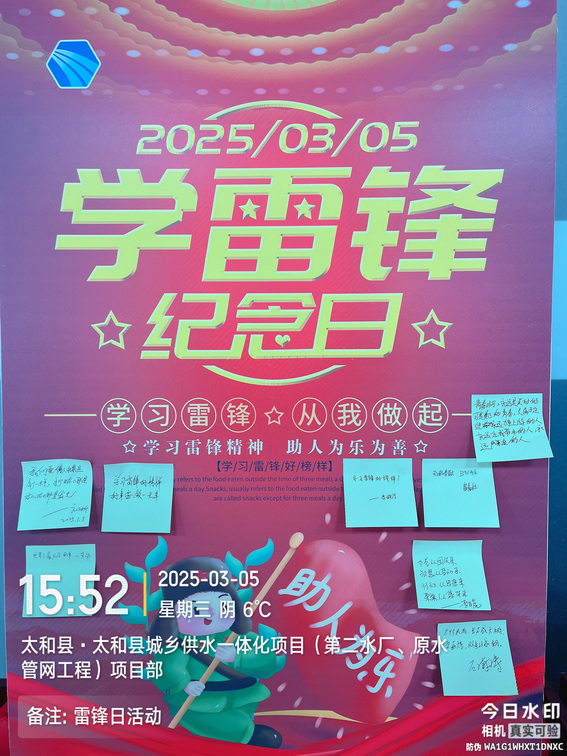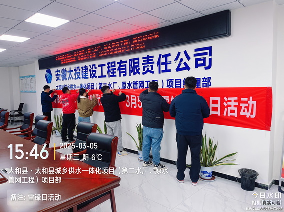 3月5日,太和供水一体化项目组织全体员工开展了一次意义非凡的学雷锋活动,以此弘扬雷锋精神,激发员工的社会责任感和服务意识。