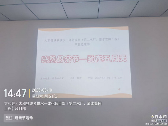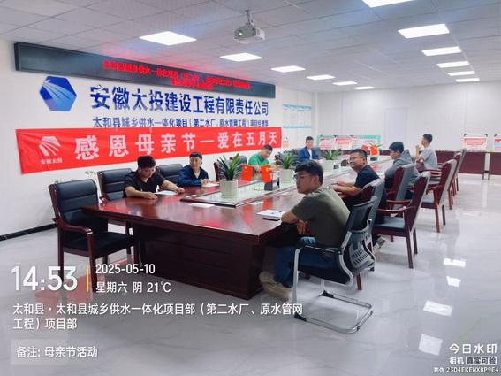 为弘扬孝亲文化,营造和谐温馨的企业氛围,太和供水一体化项目部于5月10日组织开展“感恩母亲节,爱在五月天”主题活动,全体项目成员热情参与。