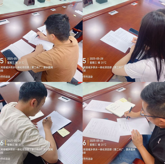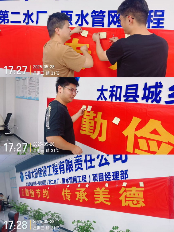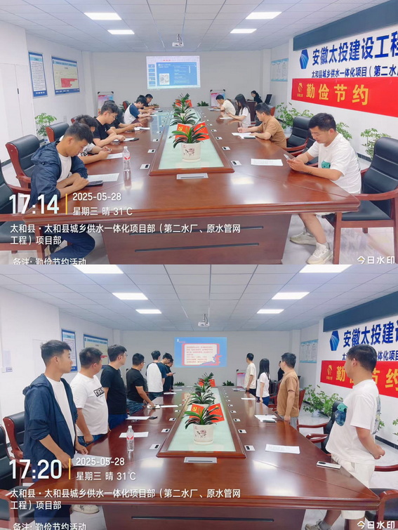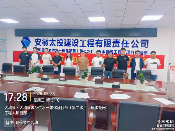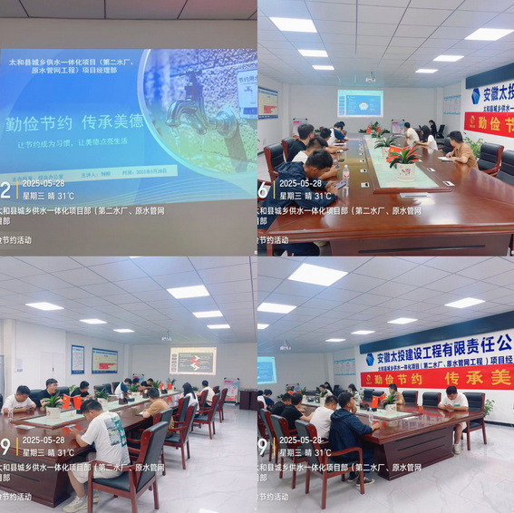 勤俭节约是中华民族的传统美德,也是现代社会可持续发展的重要理念。为深入贯彻落实绿色发展理念,5月28日下午,太和供水一体化项目组织开展“勤俭节约,传承美德”主题宣传活动,引导项目员工树立节约意识,养成绿色低碳的生活方式。