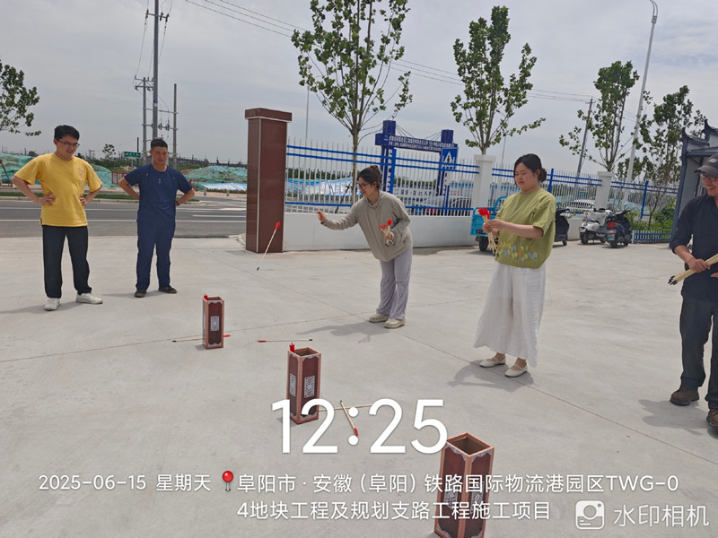 为丰富员工文化生活,增进团队凝聚力,营造轻松愉悦的工作氛围,铁路物流港园区项目于2025年6月15日成功举办父亲节趣味投壶挑战赛。此次活动将传统投壶游戏与创新玩法相结合,吸引众多员工踊跃参与,现场气氛热烈,欢声笑语不断。