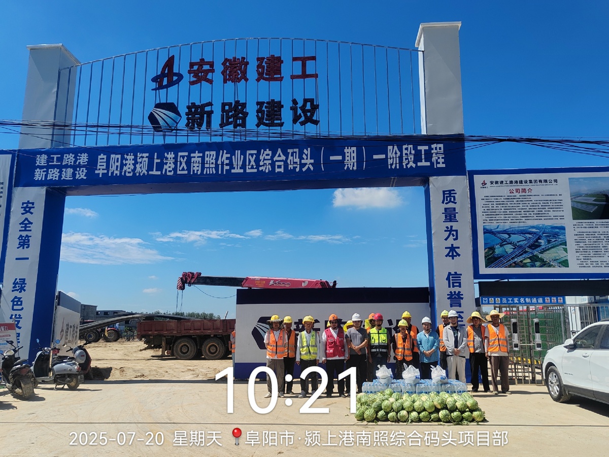 此次慰问活动不仅送去了物质清凉,更极大鼓舞了一线人员的士气。下阶段,颍上港南照综合码头项目部将持续加强高温天气应急管理,深化安全生产专项整治成果,以更高要求落实安全生产责任,全力冲刺后续建设目标,保质保量完成每一阶段的任务。