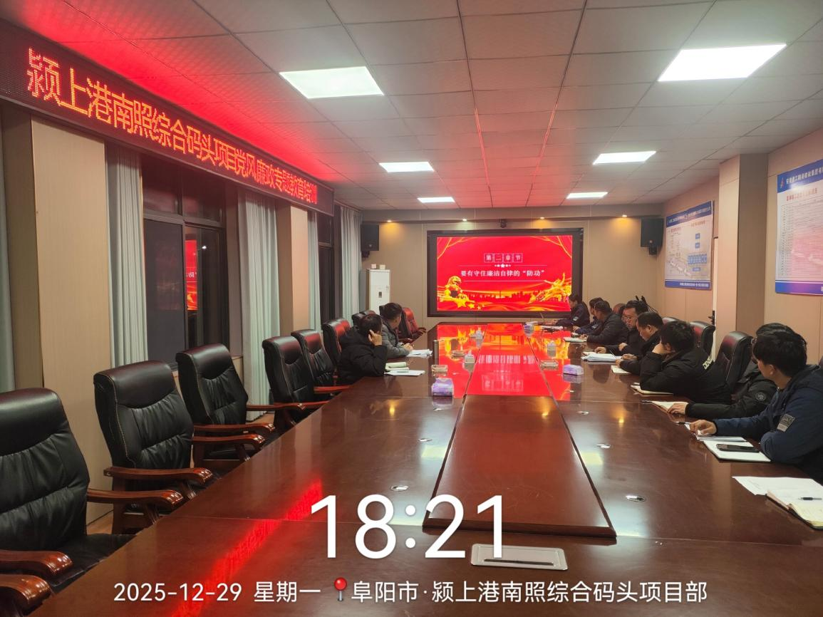 为进一步强化廉洁从业意识,筑牢拒腐防变思想堤坝,12月29日晚,颍上港南照综合码头项目组织开展了系列专题学习教育活动,将党风廉政建设与严格落实过紧日子要求深度融合,为项目高质量发展注入廉洁动能。