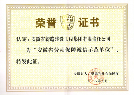 安徽省劳动保障诚信示范单位