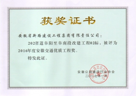 S202阜阳至阜南段省优质工程奖