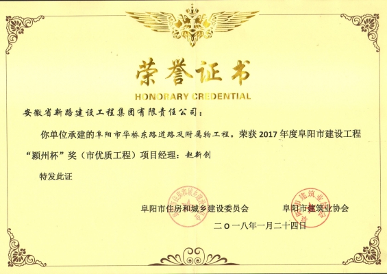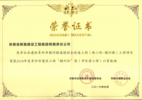 颍上新东方大道01标省优质工程奖