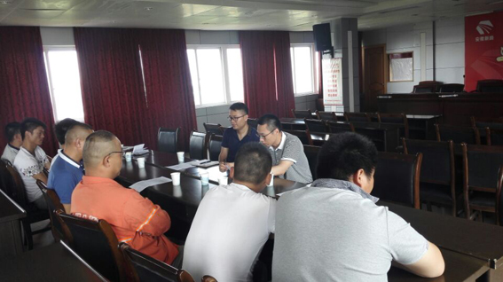 2015714上午,阜阳路虹养护公司利用施工间隙,在公司五楼会议室召开了摊铺班组人员调整会议。