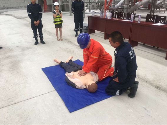 此次演练首先由蓝天救援队人员带领共同学习了高温中暑应急救援演练视频资料;接着临泉沥青拌和站人员按照应急演练方案在拌和站施工现场模拟高温中暑事故,在现场副总指挥韦志明站长的带领下,各救援小组按照职责分工有序开展救援工作。演练结束后公司经理尹飞、蓝天救援队人员分别对演练进行点评,提出不足之处。最后,蓝天救援队人员用假人做示范,指导拌和站人员“心肺复苏法”的使用和注意事项。
