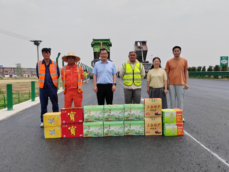 2025年端午节来临之际,安徽茂诚路桥工程有限公司于5月27日组织开展了“情暖端午,关爱一线”节日慰问活动。公司总经理田明坤带队,前往各拌和站及沥青施工项目部为坚守岗位的一线员工送去节日的问候与关怀,并送上粽子、咸鸭蛋等慰问品,让员工们切实感受到公司的温暖与节日氛围。
