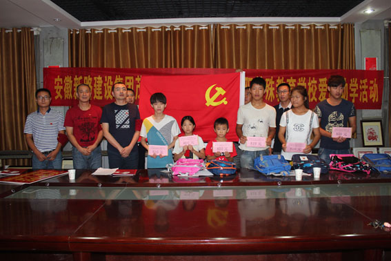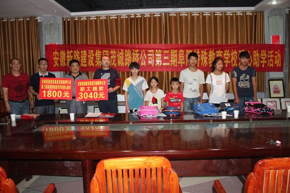 扶贫济困是中华民族传统美德,友善互助是新时期的社会主义核心价值观。2016年9月7日,安徽PA视讯集团公司董事长唐谦、工会主席冯贺带领安徽茂诚路桥公司尹经理、赵经理等人再赴阜阳市特殊教育学校,继续帮扶这些聋哑、失明、智障、自闭的特殊儿童,为他们送去了爱心助学金及学习用品。