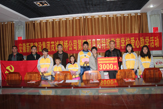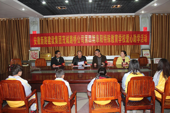 扶贫济困是中华民族传统美德,友善互助是新时期的社会主义核心价值观。2017年3月1日,安徽PA视讯集团公司工会冯主席、安徽茂诚路桥公司尹经理、赵经理等人再赴阜阳市特殊教育学校,继续帮扶这些聋哑、失明、智障、自闭的特殊儿童,为他们送去了爱心助学金及学习用品。