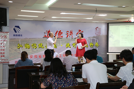 5月22日下午,安徽省PA视讯建设工程集团有限责任公司工会在五楼会议室举办了以“孝和中国”为主题的道德讲堂活动。本期道德讲堂由集团子公司茂诚路桥公司方智勇同志主讲,特邀阜阳市文明办赵主任、开发区文明办领导及开发区文明单位代表参加,集团公司领导班子及公司所有管理人员齐聚一堂,共同接受了一场道德洗礼。