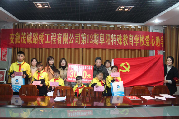 此次爱心助学活动,安徽茂诚路桥公司对6名贫困残疾学生进行了帮扶,公司捐赠爱心助学金3000元,帮助他们减轻家庭负担。并鼓励受助学生要自强不息,努力学习。截止本期,新茂诚公司已开展爱心助学十二期。