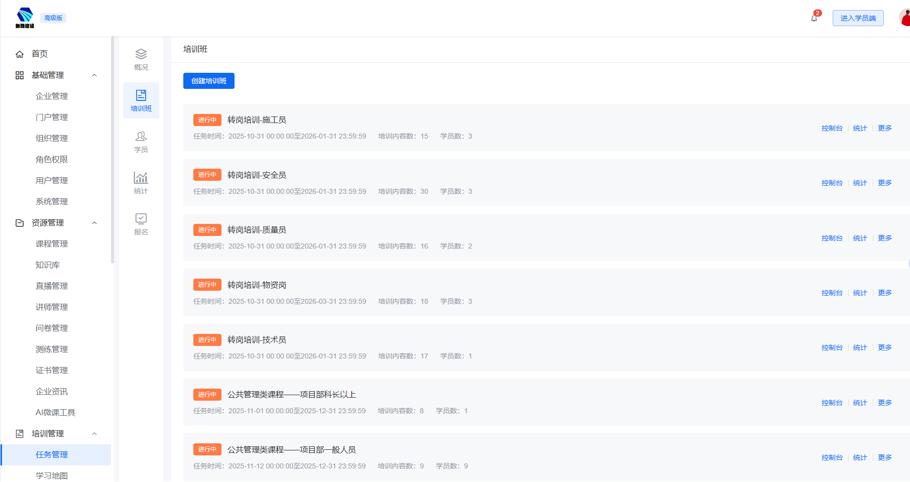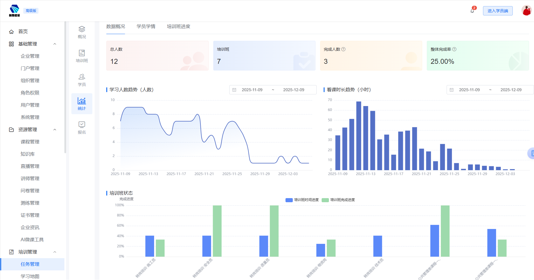 管理后台动态跟踪学习进度情况