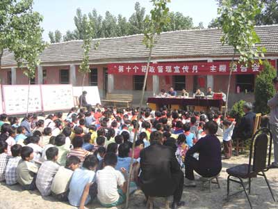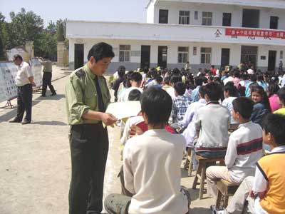 5月23日,阜阳市公路局执法人员到阜南县开展“第十个路政宣传月”主题报告会暨送法进校园活动,此次活动在S328线沿线的姬庄小学和苗集中学进行。阜阳市公路局路政执法人员为广大中小学生作了“爱护公路,从我做起”为主题的生动报告。1300余名中小学生通过听取报告会、观看宣传展板、阅读宣传传单、参加万人签名等活动受到了一次深刻的教育,从而提高了广大学生爱路护路的意识和遵章守法的自觉性。此项活动作为市公路局开展“第十个路政宣传月”活动之一将在全市所辖的八个县区依次进行。
