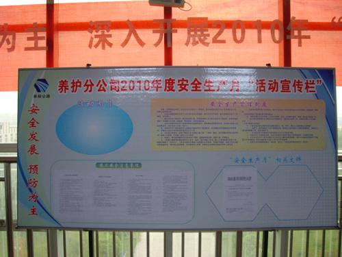 养护分公司悬挂安全月宣传条幅,布置宣传栏。