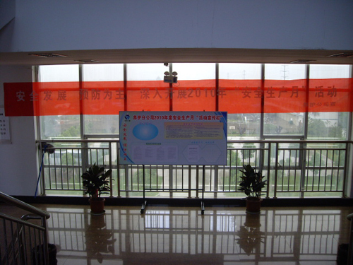 年安全月宣传活动,在办公楼悬挂安全月宣传条幅,布置宣传栏。