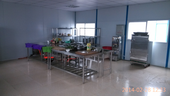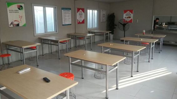 公司项目部为职工宿舍统一配置床铺、衣柜及生活用品等;工地活动室配置有限电视电视及健身娱乐设施;工地食堂、卫生间配置了热水器、冰箱、消毒柜等生活设施,为员工建设了“星级”宿舍。
