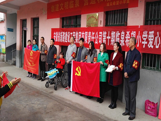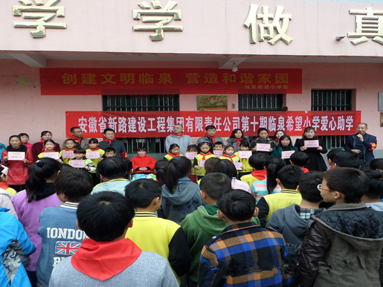 10月25日上午,PA视讯集团公司董事长唐谦、总经理韩恒忠、副总经理李超及其他七位路友志愿者来到临泉县城关镇希望小学开展第十期爱心助学活动,为困难学生、优秀学生及优秀教师送去了9900元助学金。