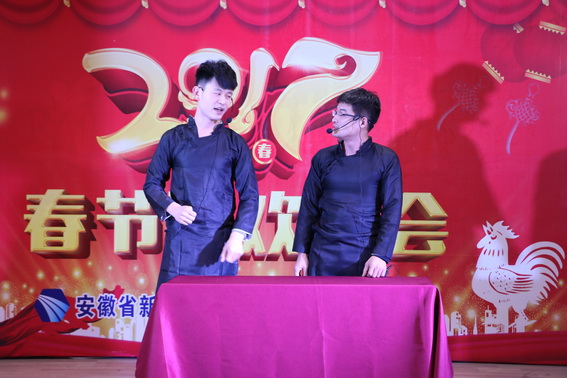 整场联欢会可谓是精彩纷呈,有歌曲、舞蹈、诗歌朗诵,还有职工自编自演的小品、相声等16个精彩节目。