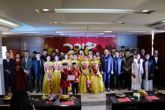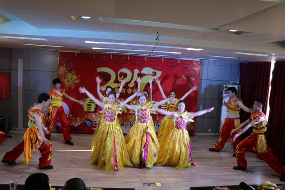 联欢会以一支喜庆热闹的《杨帆起航2017》舞蹈开场,铿锵有力的击鼓声,展示着公司生机勃勃的面貌,预示着鸡年的开门红。