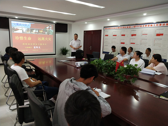 为了更好地做好项目部安全工作,让全体工作人员掌握一定的消防常识及灭火、疏散和逃生等技能,提高全员安防意识确保项目部人员生命及财产安全,6月8日下午一点本项目邀请消防公司教官对项目部人员及各工区班组长及安全员进行消防安全培训。