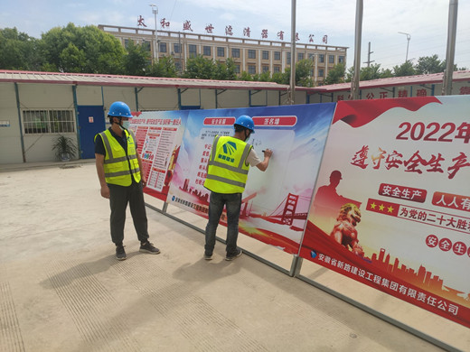 根据集团公司安全部对“安全生产月”活动的要求,我部安全科李长顺向大家宣读了2022年“安全生产月”活动具体时间节点与实施方案。随后项目经理董国庆带领项目部全员进行宣誓,并在签名墙上签名,以此来表明大家全力确保生产安全的决心。