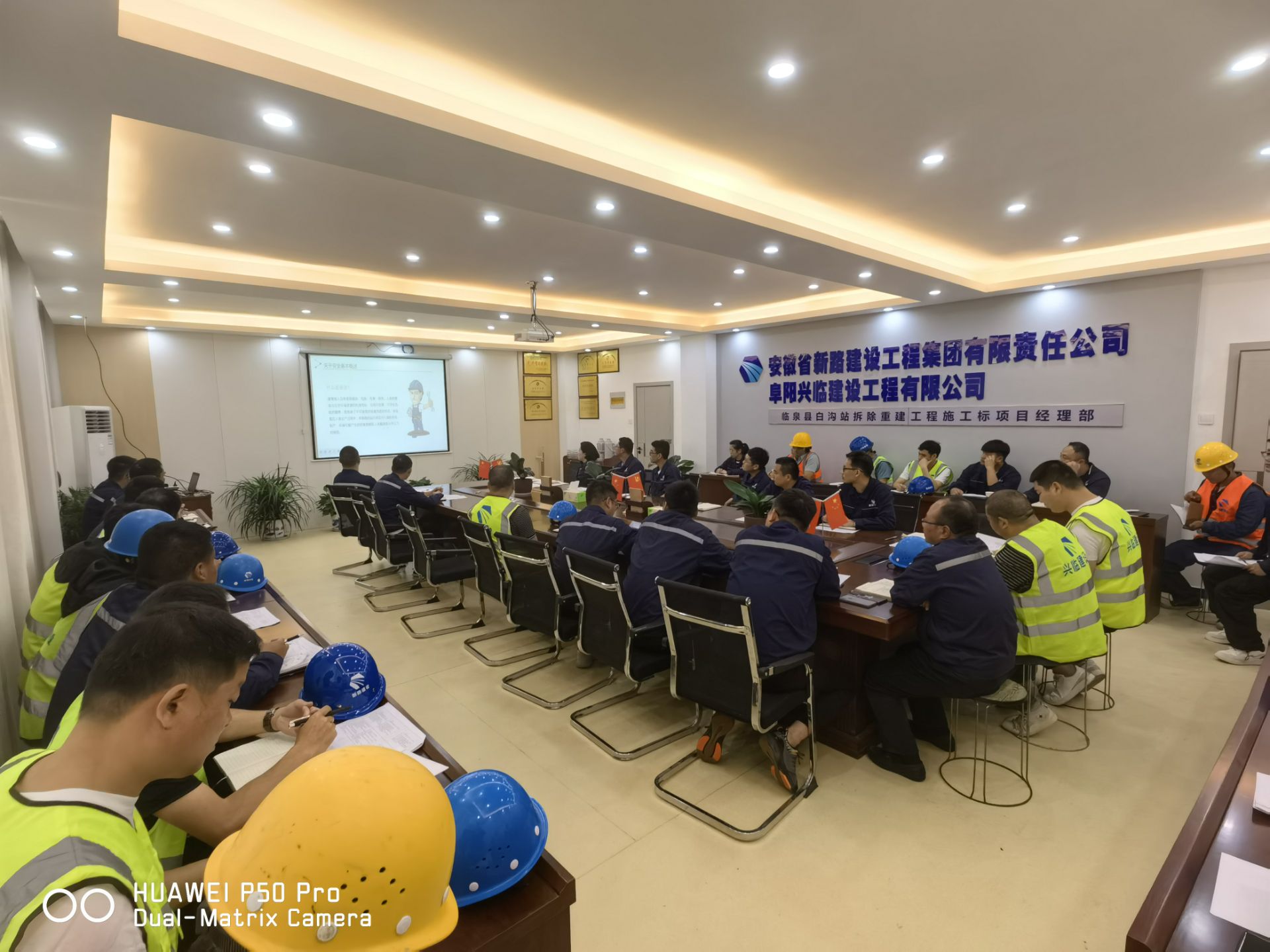 为了迎接全国第22个“安全生产月”的到来,切实开展好以“人人讲安全,个个会应急”为主题的安全月相关活动,坚持“安全第一、预防为主、综合治理”的方针,进一步推进公司安全文化建设。2023年5月28日临泉县白沟站拆除重建工程项目施工标项目部“安全生产月”活动动员会,会议由安全科科长李默主持。