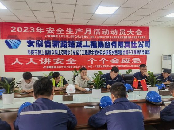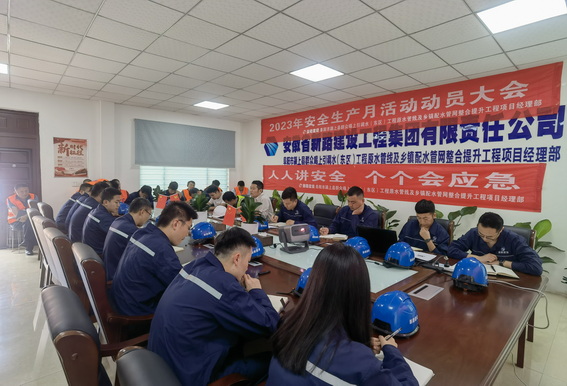 会上,首先由项目安全科宣读了2023年“安全生产月”活动实施方案,详细介绍了活动内容;其次,项目负责人王鹏宣贯集团公司对“安全生产月”的活动要求,让项目全体员工及班组人员充分认识到安全生产的重要性;随后,安全科科长张润泽组织项目全体人员开展安全生产月专题教育培训和观看安全生产月主题宣教视频《防为上》,最后,项目负责人王鹏就2023年“安全生产月”活动作动员讲话,要求项目部所有管理及施工人员高度重视“安全生产月”活动,以深入开展安全生产月活动为契机,提升安全管理水平,同时强调要做到安全生产月与日常工作实际相结合,积极开展各项隐患排查治理活动,筹划好各类应急演练、警示教育等专项活动,提高项目和班组人员安全意识;加大安全生产教育宣传力度,扎实推进项目各项安全管理工作做实做细,真正将安全生产责任落到实处,为颍上管网东区项目按期完工奠定坚实基础。
