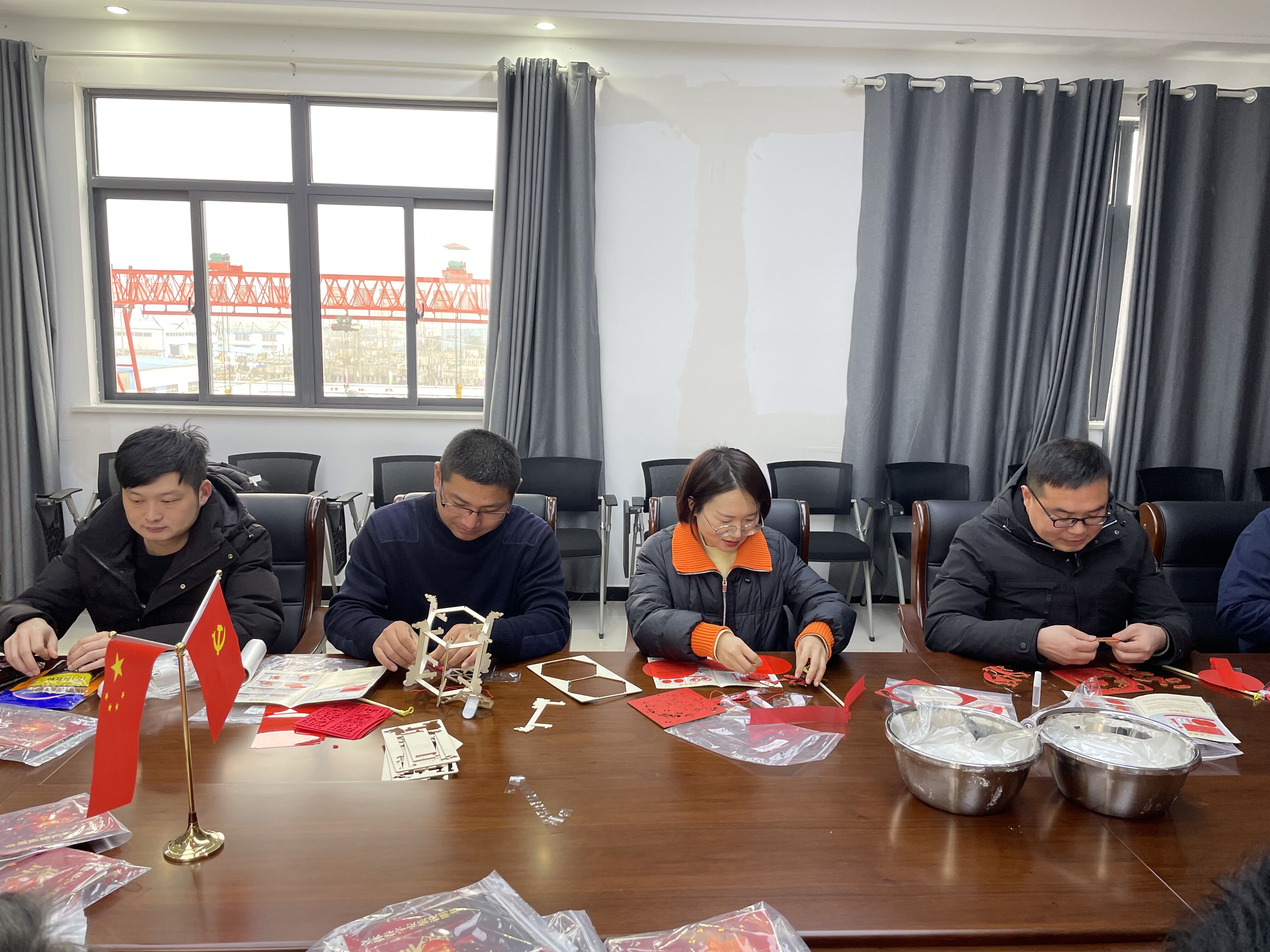 活动现场每个人都积极动手制作,大家聚在一起,开始折叠、拼接、粘灯笼,相互研究,切磋技艺,不一会儿一盏盏漂亮的花灯就呈现在眼前,大家提起灯笼相互祝福,现场气氛热闹、温馨、其乐融融。