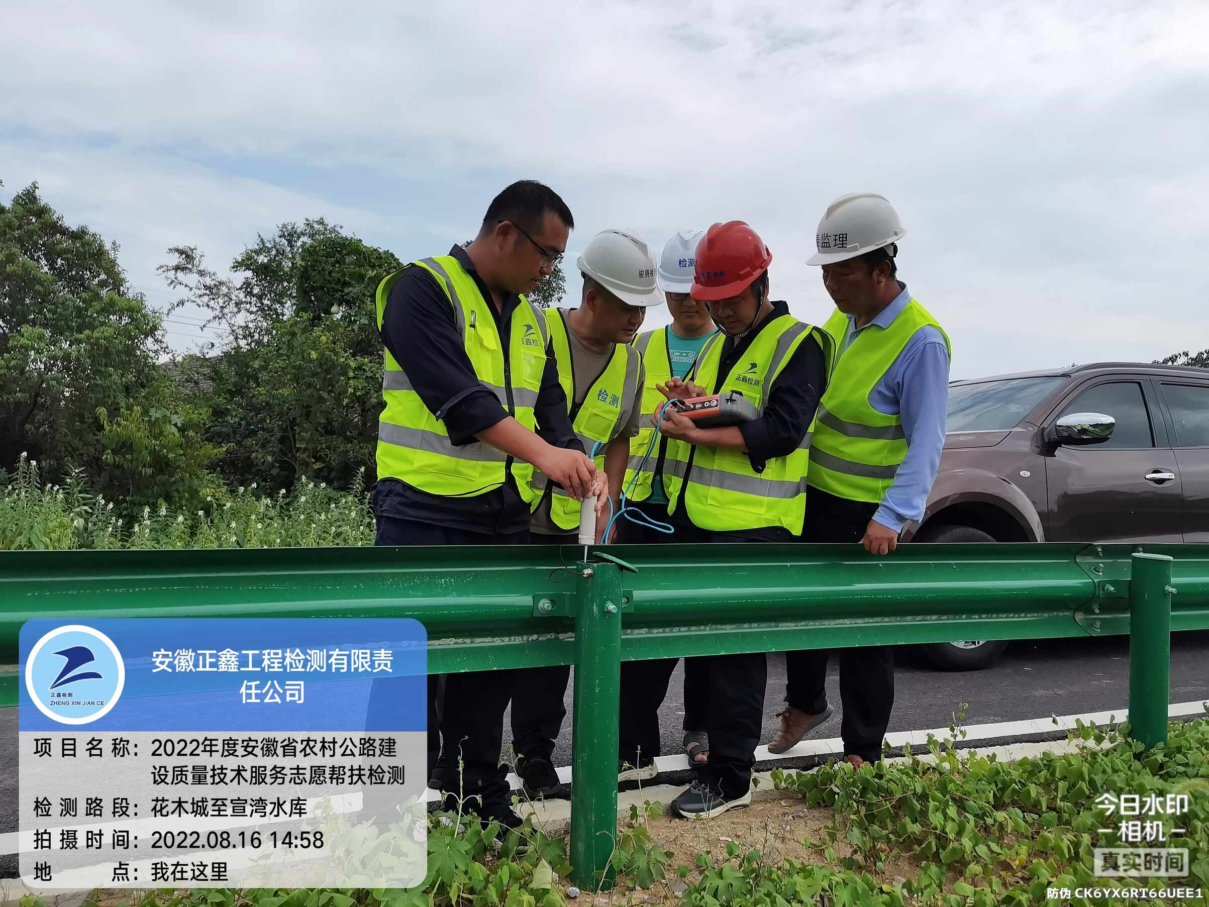 炎炎日正午,灼灼火俱燃。我公司帮扶小组在公司经理助理张曼 的带领下于 8 月 16 日至 17 日开展肥西县农村公路项目2 个标段、庐 江县 4 个乡镇约20.1km农村公路建设项目现场检测。此次检测工作包括路面结 构取芯,桥梁结构物强度、钢筋保护层厚度,交通安全设施标线、标 志和波形梁护栏检测等。在完成检测任务的同时我公司又组织了资深技术专家深入施工现场,对项目参建单位技术人员进行实操培训和理论知识宣贯等现场技术服务,帮助农村公路建设管理人员提升农村公路质量监管能力和水平,助力建设“四好农村路”。此次帮扶工作得到合肥市交通运输局的高度认可。