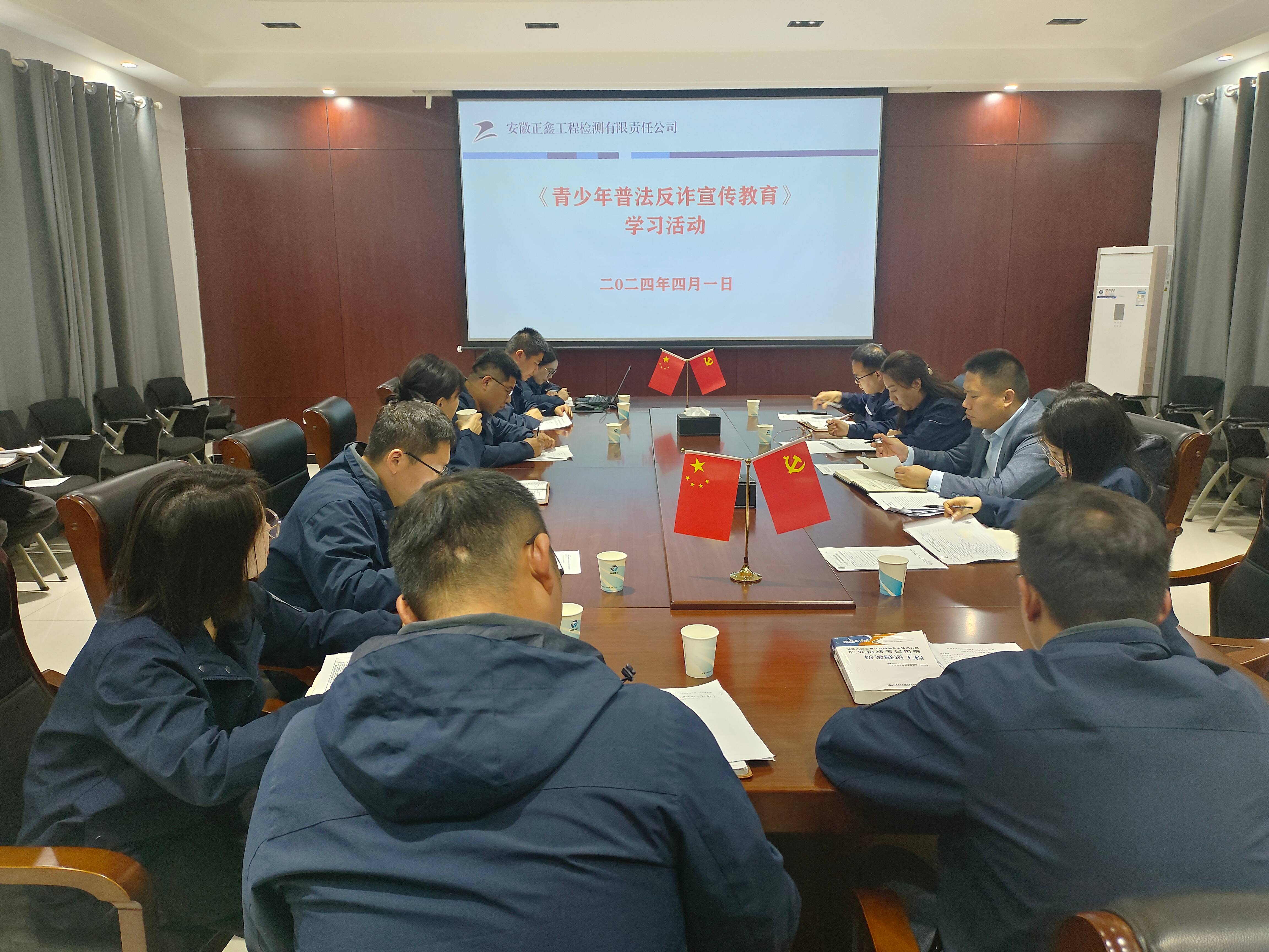 为了提高未成年人的防范意识,保护未成年人的合法权益。正鑫检测公司于4月1日,组织开展“青少年普法反诈宣传教育”学习活动。