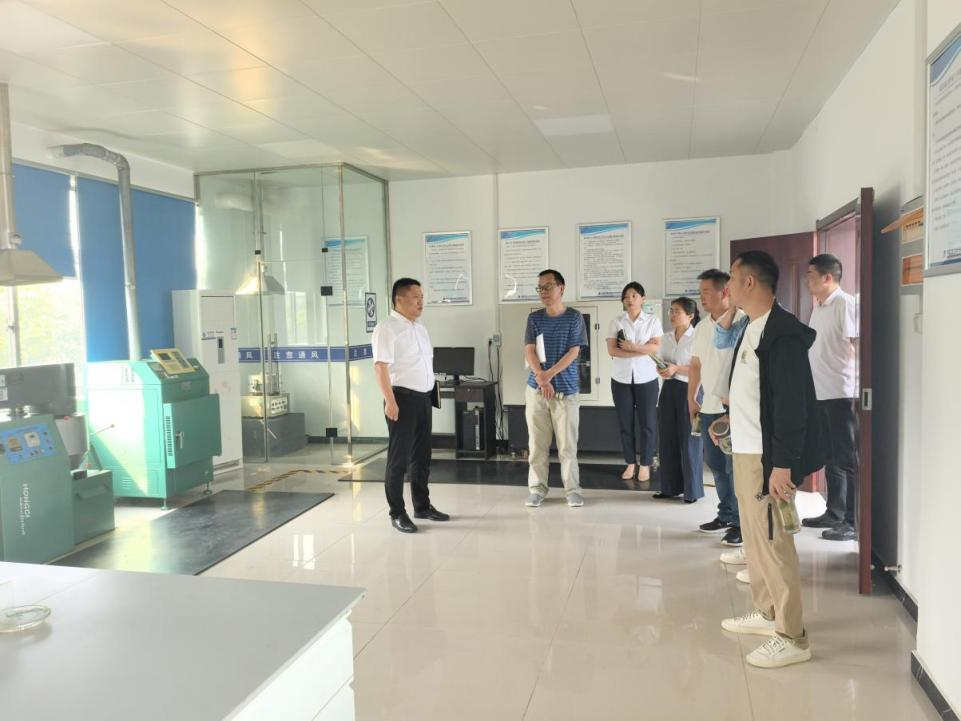 於祖庆一行首先参观了公司试验室的各个功能室,了解了公司的概况、功能室分区布局、仪器设备配置、人员技术能力等情况。