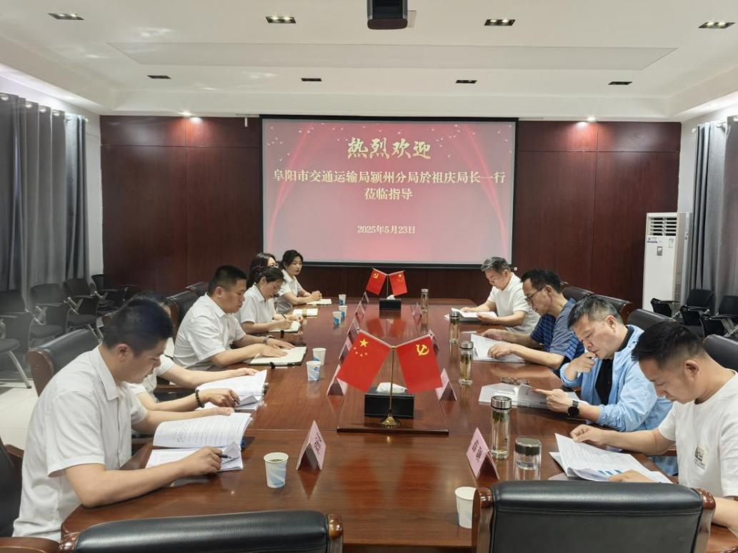 2025年5月23日,阜阳市交通运输局颍州分局副局长於祖庆一行到正鑫检测公司开展业务指导工作,公司党支部书记、总经理王思伟及领导班子成员全程陪同。