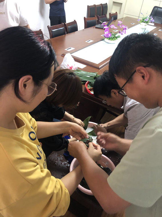 “五月五,是端阳。门插阳,香满堂。吃粽子,撒白糖,龙舟下水喜洋洋。”又是一年粽叶飘香时,在端午佳节来临之际,为了传承历史文化,继承传统习俗,享受健康娱乐,彰显传统文化魅力。6月23日下午,公司在二楼会议室举行包粽子活动,热热闹闹庆端午。