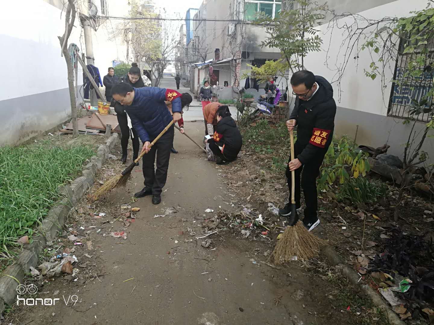 党员志愿者在清扫社区街道
