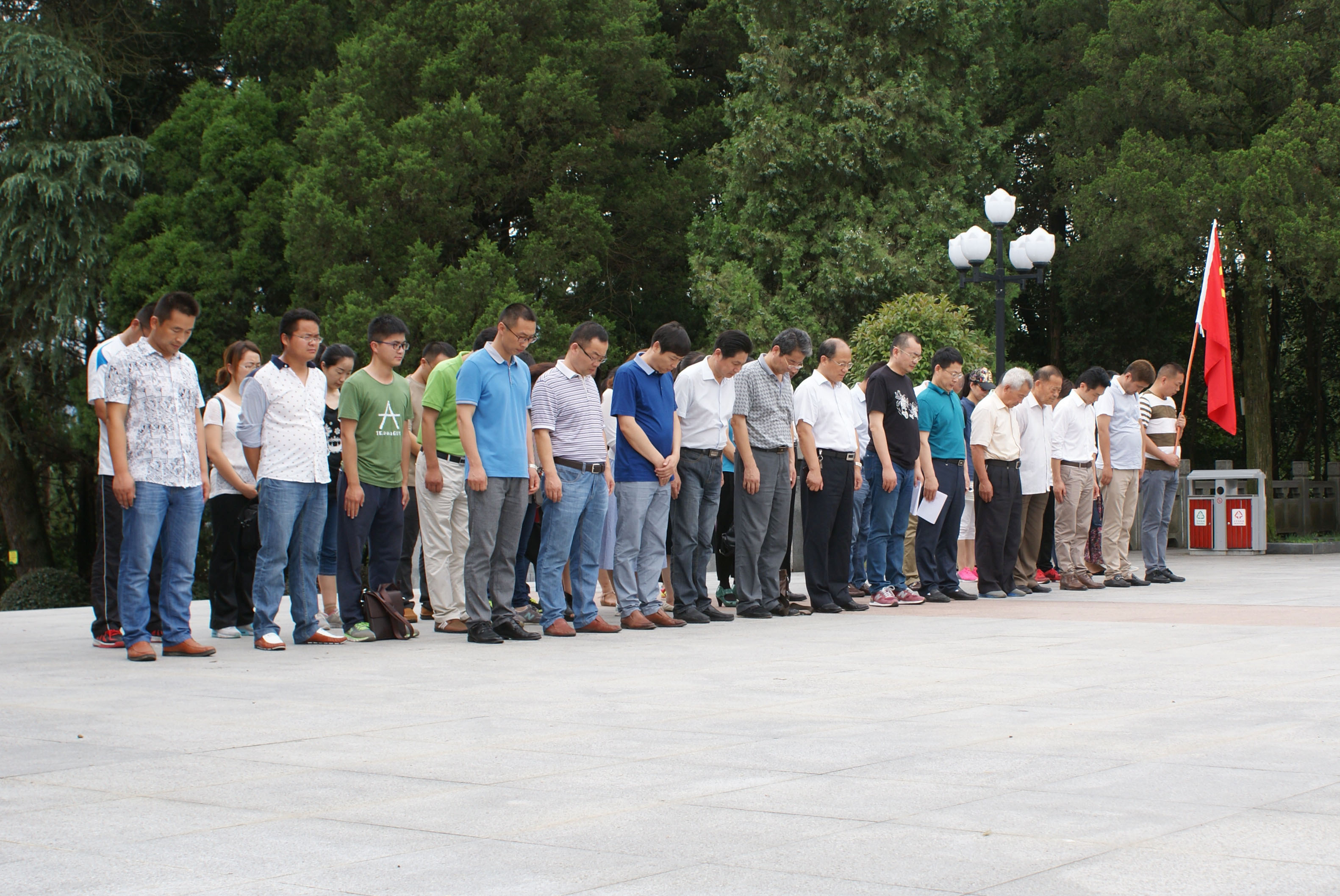在烈士纪念塔前,向革命先烈鞠躬、默哀