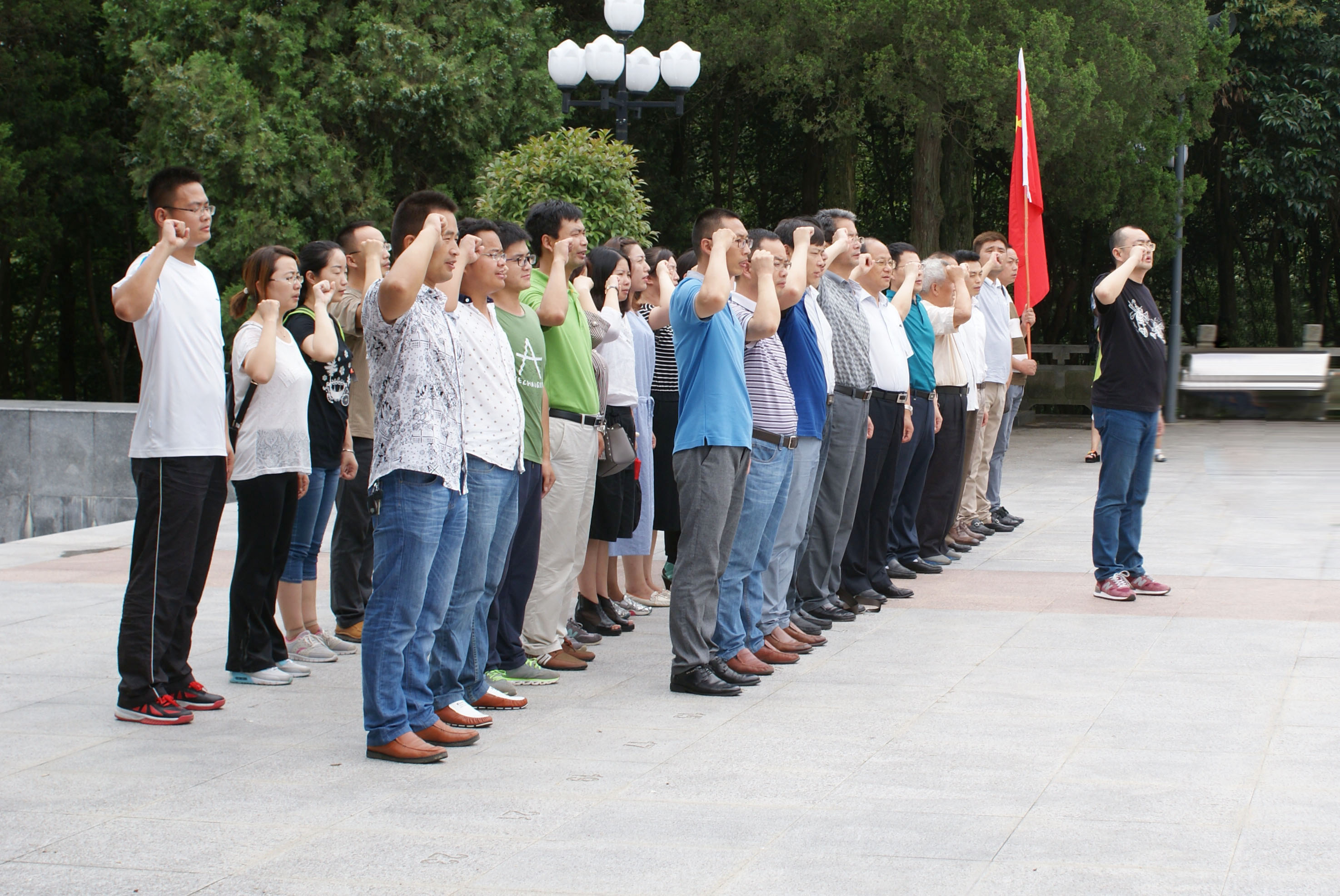 当日上午,在唐谦书记带领下,全体人员怀着无比崇敬的心情,首先参观了金寨县革命博物馆,看到一幅幅历史图片、一段段文字表述、一件件珍贵文物,实地感受了革命先烈百折不挠的革命精神和勇往直前、顽强拼搏的英雄气概;聆听金寨革命历史名人事迹,瞻仰59位开国将军风采,学习他们无私奉献精神和优良作风;随后,来到革命烈士纪念塔前,向革命烈士默哀、鞠躬、敬献花篮,随着唐谦书记,举起右手,齐声郑重重温入党誓词;最后,大家参观了金寨县红军纪念堂、洪学智将军墓园、红军烈士墓园,深刻缅怀先烈。