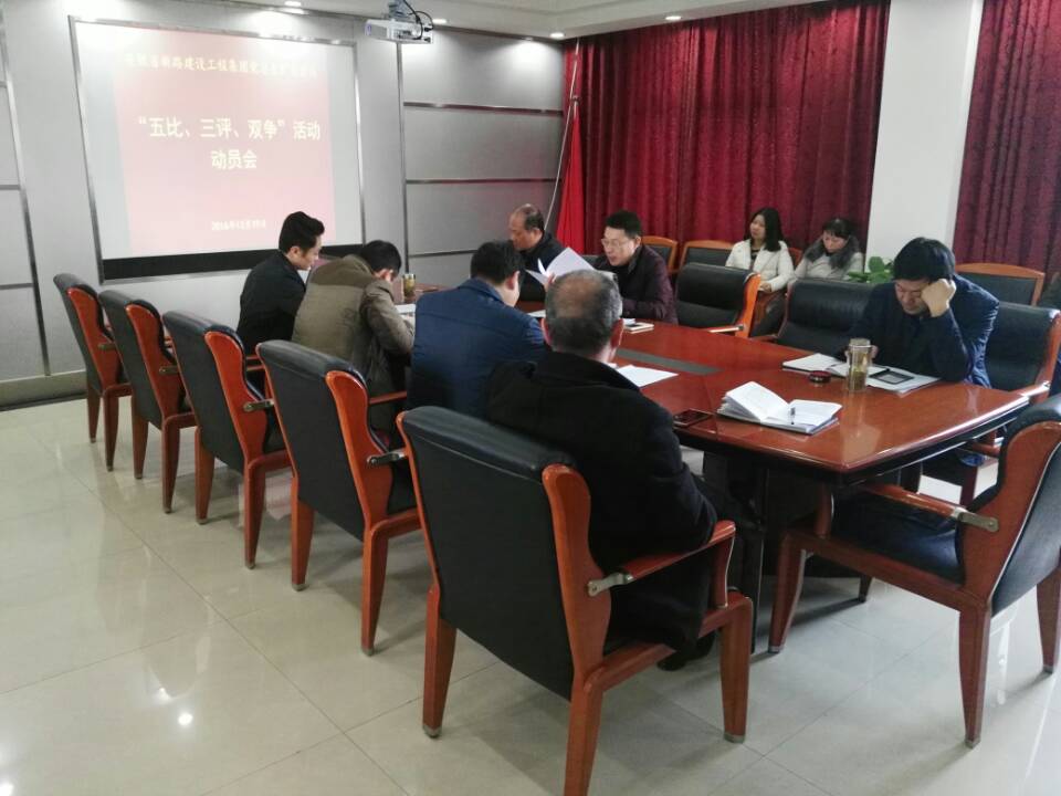 12月19日上午,PA视讯集团公司召开党员干部会议,传达了市局《关于开展“五比、三评、双争”活动方案的通知》路党[2016]116号文件精神,并在会上作了动员。党总支副书记韩恒忠同志在会议上提出要求:开展五比、三评、双争活动,就是要营造比学赶超的浓厚氛围,引导党员干部增强问题意识,认识不足,找出差距,不断改进和提高。通过五比、三评、双争活动,使党员干部从思想根源上净化和升华,进一步激发党员发挥先锋模范作用的内生动力,进一步规范党组织生活。