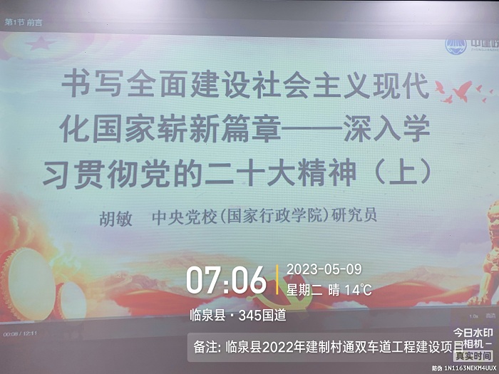 为深入学习贯彻党的二十大精神,我部于2023年5月9日早上7点在项目会议室开展《深入学习贯彻党的二十大精神》教育培训。